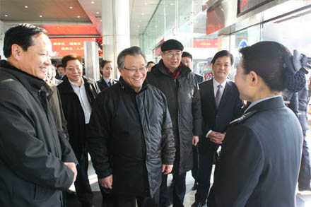 2月16日,是2012年春運的最后一天,國家交通運輸部黨組書記、部長李盛霖及交通部有關部委辦領導在山東省委常委、副省長王軍民等省、市領導陪同下,蒞臨山東交運集團視察指導工作,并親切看望、慰問一線干部職工。