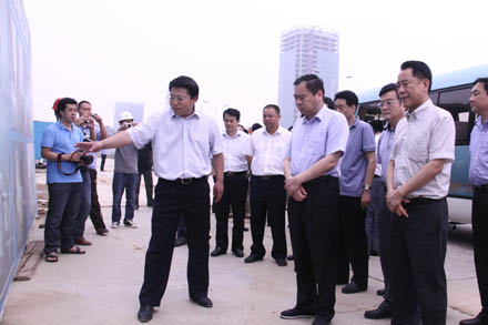610,山東省濟南市委書記王敏、副市長王新文等領導一行,在市交通運輸局局長蔣向波、局巡視員陳業華、槐蔭區委書記李繼民、區長國乘彥、集團公司總經理王謙和西客站董事長田景東等的陪同下,對濟南西客站綜合客運樞紐施工現場進行實地調研。