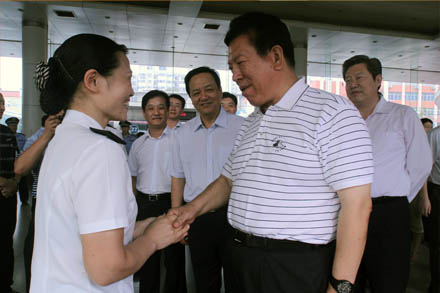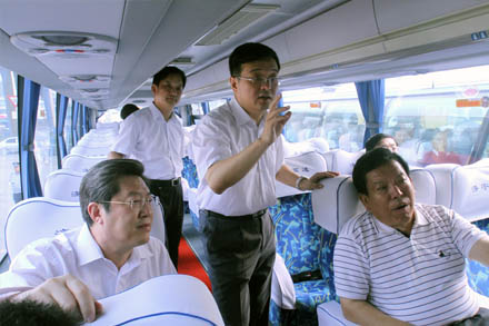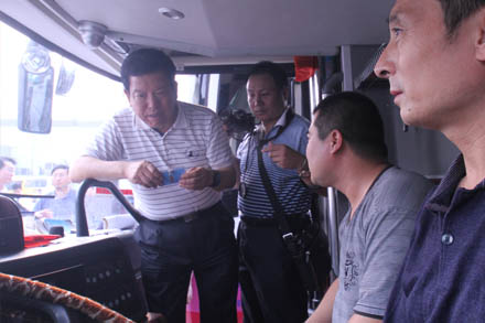 王副局長先后視察了濟南長途汽車總站的安檢、總服務臺、檢票、售票、熱線等崗位,與黨的十八大代表、總站金牌檢票員李文親切交談,勉勵她在平凡的服務一線崗位上將親情服務持續發揚下去。王副局長一行領導專門登上代臥車、臥鋪車,向安全行車370萬公里“零事故”駕駛員、省勞模賈湘鳴及宜昌臥鋪班車駕乘人員詳細詢問了車輛改造、安全運營以及車載GPS的使用情況;在安全監控中心重點了解了車輛3G視頻及GPS監控管理情況。
