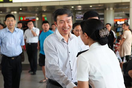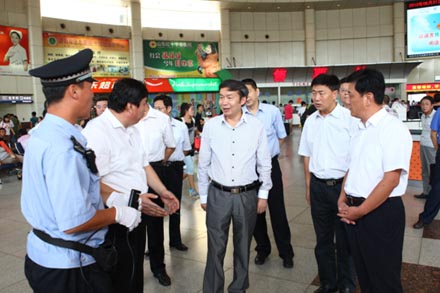 8312013年暑運的最后一天,國家交通運輸部副部長何建中蒞臨山東交運集團,視察指導安全生產和精神文明建設工作,親切看望、慰問一線干部職工。省交通運輸廳廳長張傳亭、集團公司董事長吳宗昌、總經理王謙陪同視察。