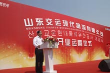 省交通運輸廳巡視員高洪濤向山東交運現(xiàn)代物流有限公司正式運營表示熱烈的祝賀,在講話中指出:山東省交通運輸集團(tuán)與韓國現(xiàn)代商船株式會社攜手發(fā)展,必將取得更加積極的成效,將有力地推進(jìn)青島地區(qū)乃至山東省物流基礎(chǔ)設(shè)施和物流信息化的建設(shè)進(jìn)程,為全省物流產(chǎn)業(yè)發(fā)展提供新的經(jīng)驗,為區(qū)域經(jīng)濟(jì)發(fā)展注入新的活力。他希望雙方企業(yè)人員通力合作,借助先進(jìn)的理念、管理、技術(shù)經(jīng)驗,繼續(xù)大力拓展現(xiàn)代物流市場,不斷提升我省現(xiàn)代物流業(yè)發(fā)展的水平,成為山東交通現(xiàn)代物流行業(yè)的領(lǐng)跑者,并表示省交通運輸廳也將一如既往地給予最大的支持,服務(wù)好全省交通運輸事業(yè)的長足發(fā)展。
