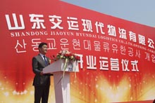 10:58分,啟動儀式正式開始。集團(tuán)公司董事長、黨委書記吳宗昌在致辭中指出:山東交運現(xiàn)代物流有限公司的開業(yè)運營,是山東交運集團(tuán)貫徹落實“十二五”戰(zhàn)略發(fā)展規(guī)劃,實現(xiàn)產(chǎn)業(yè)“轉(zhuǎn)型升級”的重要舉措,是集團(tuán)公司積極引進(jìn)戰(zhàn)略投資者,實施“實體經(jīng)營”和“資本運作”雙輪驅(qū)動戰(zhàn)略的重要成果,標(biāo)志著山東交運集團(tuán)在跨地區(qū)、跨行業(yè)發(fā)展上邁出了堅實的一步,也必將對集團(tuán)的做優(yōu)做強產(chǎn)生重大而深遠(yuǎn)的影響。希望公司成立后,中韓雙方把山東交運現(xiàn)代物流有限公司建設(shè)成為具有核心競爭力的卓越企業(yè),同時以合資公司為平臺,本著優(yōu)勢互補、合作共贏的原則在更廣泛的領(lǐng)域、更深的業(yè)務(wù)層次展開全面對接和合作,為山東經(jīng)濟(jì)和社會發(fā)展做出應(yīng)有的貢獻(xiàn)。