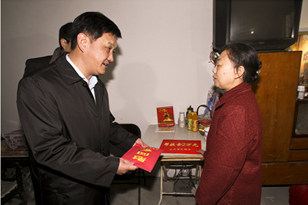 126日,省文明辦專職副主任王少杰、省文明辦綜合協調處副處長耿為華、市委宣傳部副部長、市文明辦主任彭壽謙、副主任曹在集團公司董事長、黨委書記吳宗昌、黨委副書記楊國強等同志的陪同下,親切看望了宋洋母親,分別為其送去慰問金、節日禮品和新春祝福。