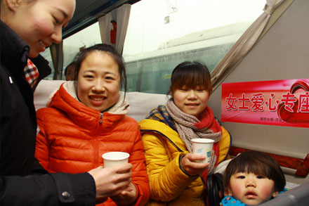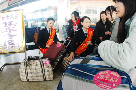 “中華第一站”濟南長途汽車總站成立了“春日閃亮服務組”,全部由女服務員組成,為廣大女性旅客特別是其中的老弱病殘孕幼等重點旅客提供專屬看護、提前購票、優先乘車等細致、貼心的服務;總站南區推出“女士兒童在線選座購票”、“女士兒童專線車”,
