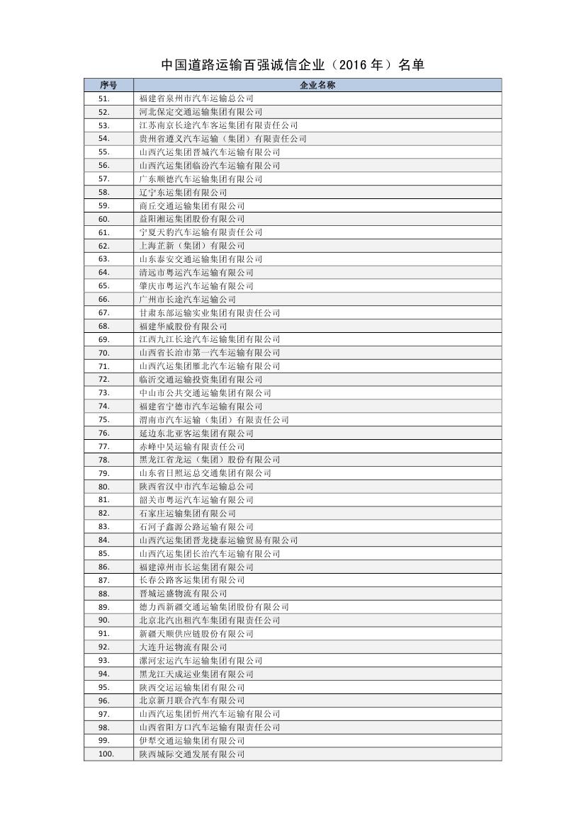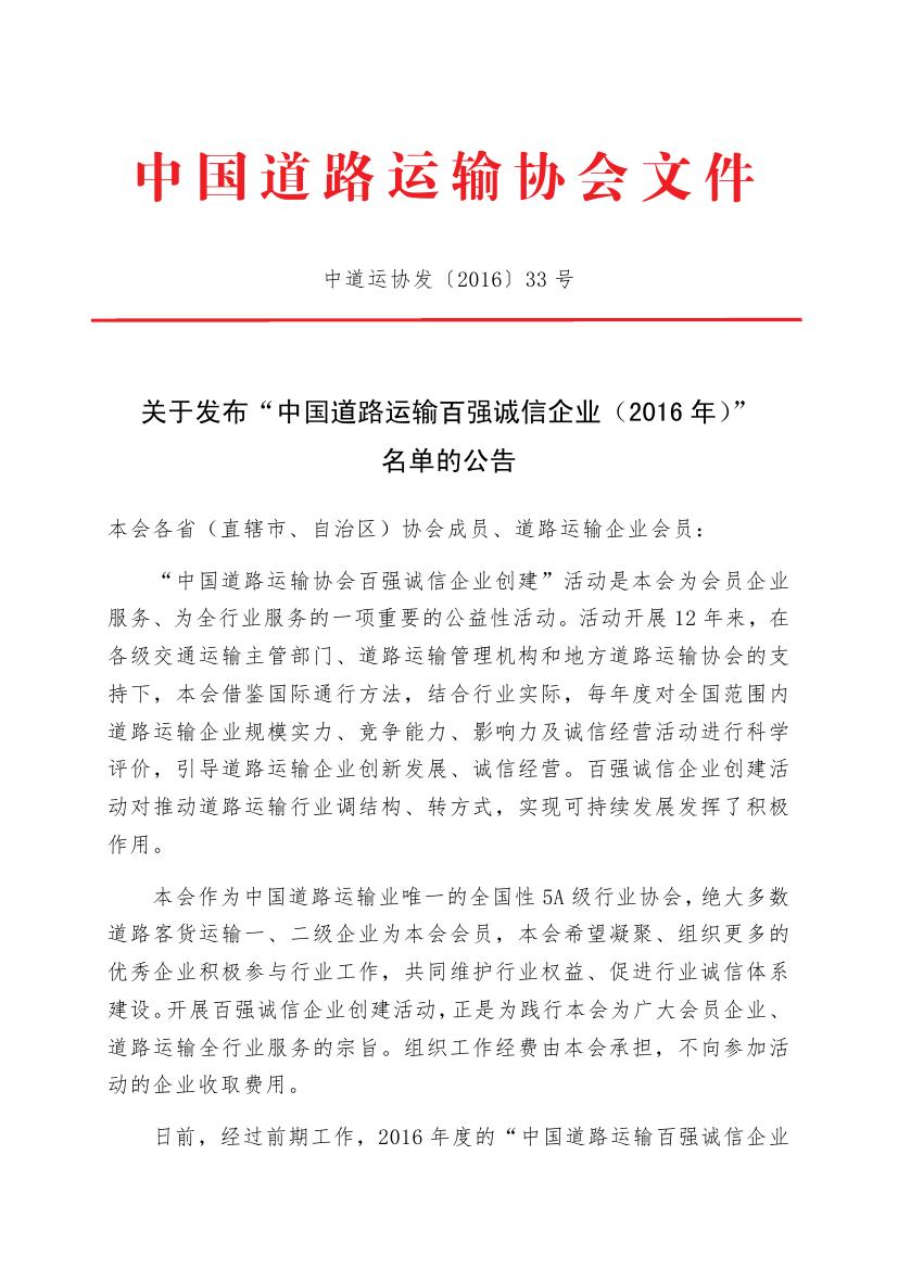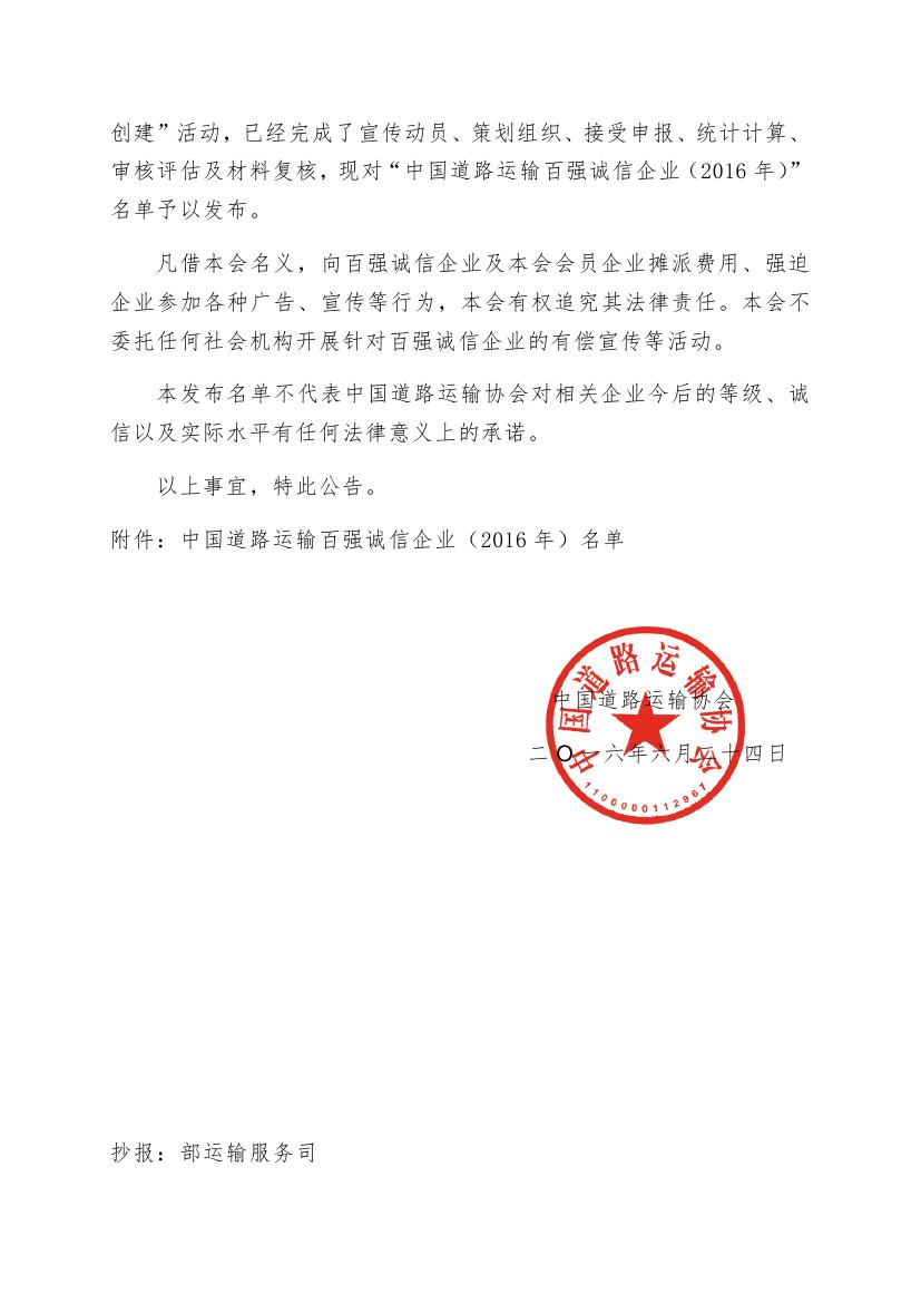 6月24日,中國(guó)道路運(yùn)輸協(xié)會(huì)發(fā)布了2016年度道路運(yùn)輸百?gòu)?qiáng)誠(chéng)信企業(yè)名單,集團(tuán)再度榮獲“全國(guó)道路運(yùn)輸百?gòu)?qiáng)誠(chéng)信企業(yè)”稱號(hào),排名第十一位,比去年前進(jìn)一個(gè)名次。