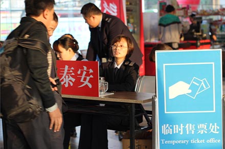 增點售票  確保暢通 為方便旅客購票,東站在候車大廳7個售票窗口全部打開的基礎上,另增設多個臨時售票點;成立財務售票保障組,助力一線售票;制作了十余個醒目熱點線路標識牌,在客流高峰期,由財務人員在大廳內發售專線客票;開通了網上購票、熱線訂票、自助售票、機售票等多種購票方式,方便旅客便捷購票。