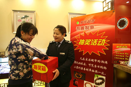 “吾善制串”開創(chuàng)新活動(dòng)。為不斷發(fā)揮場站的客流優(yōu)勢,將旅客的乘車時(shí)間轉(zhuǎn)換為消費(fèi)優(yōu)勢,總站“家樂超市”與“吾善制串”聯(lián)合推出抽獎(jiǎng)活動(dòng),凡在“家樂超市”購物滿38元的旅客都可憑當(dāng)日購物小票到“吾善制串”免費(fèi)抽獎(jiǎng)一次。活動(dòng)的推出,不僅受到廣大旅客的熱情歡迎,更打響了總站“吾善制串”的知名度,增加了總站第三產(chǎn)業(yè)的營業(yè)收入。