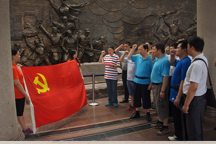 您現(xiàn)在的位置是:首頁 > 汽修三產(chǎn)產(chǎn)業(yè) 參觀紅色革命教育基地接受愛國主義傳統(tǒng)教育 次 汽修三產(chǎn)產(chǎn)業(yè) 發(fā)布時間:2014-07-04 11:09:09 參觀紅色革命教育基地 接受愛國主義傳統(tǒng)教育 ――實業(yè)公司黨支部赴臺兒莊參觀學(xué)習(xí) 6月27日,實業(yè)公司黨支部組織全體黨員赴臺兒莊大戰(zhàn)紀念館參觀學(xué)習(xí)。在紀念館內(nèi),全體黨員認真觀看了臺兒莊戰(zhàn)役介紹,追憶了革命先烈的豐功偉績,并在莊嚴的紀念館前重溫了入黨誓詞。通過參觀學(xué)習(xí),讓全體黨員接受了一次深刻的愛國主義教育,上了一次生動的黨課,在思想上進行了一次洗禮,進一步增強黨員的自覺性和先進性。 (劉海紅)